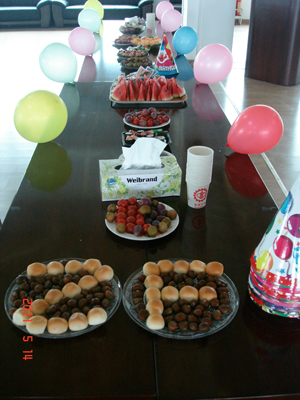 在這炎炎夏日,珠海中富支持中心茶話會終于揭開了她美麗的面紗,此次由董事長辦、供應鏈部、審計部、市場部聯(lián)袂打造的主題茶會不僅為同仁們帶來了美食,也為我們送上一絲絲清涼,一道道歡聲笑語。公司董事長Gary真摯而激勵的講話,供應鏈部區(qū)瑞蓮總監(jiān)和審計部趙麗英總監(jiān)活力四射的開場白讓我們?yōu)楹炔?,還有讓人捧腹大笑的比劃秀,讓我們共同度過了一個美好時光。